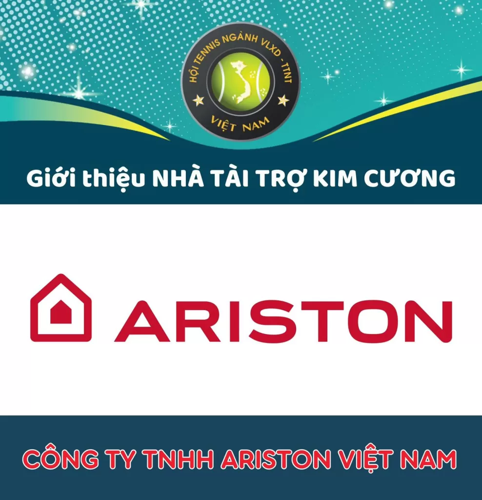 Giải tennis ngành Vật liệu xây dựng – Trang Trí nội thất Việt Nam MỪNG XUÂN 2024 hân hạnh được đồng hành cùng ARISTON VIỆT NAM, với vai trò Nhà tài trợ Kim Cương. Ban tổ chức xin trân trọng cảm ơn sự đóng góp của Quý công ty dành cho giải đấu sẽ được diễn ra vào ngày 8, 9, 10 tháng 3 năm 2024 tại TP. HCM. Chúc Quý Công ty ngày càng vững mạnh!