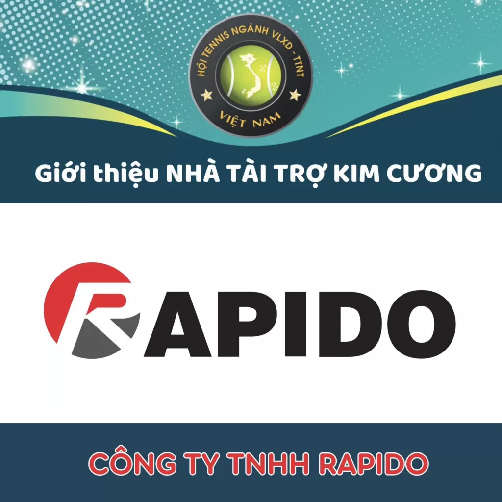 Tiếp nối tinh thần đó, Rapido hân hạnh được đồng hành cùng Giải tennis ngành Vật liệu xây dựng – Trang Trí nội thất Việt Nam MỪNG XUÂN 2024, với vai trò Nhà tài trợ Kim Cương. Ban tổ chức xin trân trọng cảm ơn sự đóng góp của Quý công ty dành cho giải đấu sẽ được diễn ra vào ngày 8, 9, 10 tháng 3 năm 2024 tại TP. HCM.