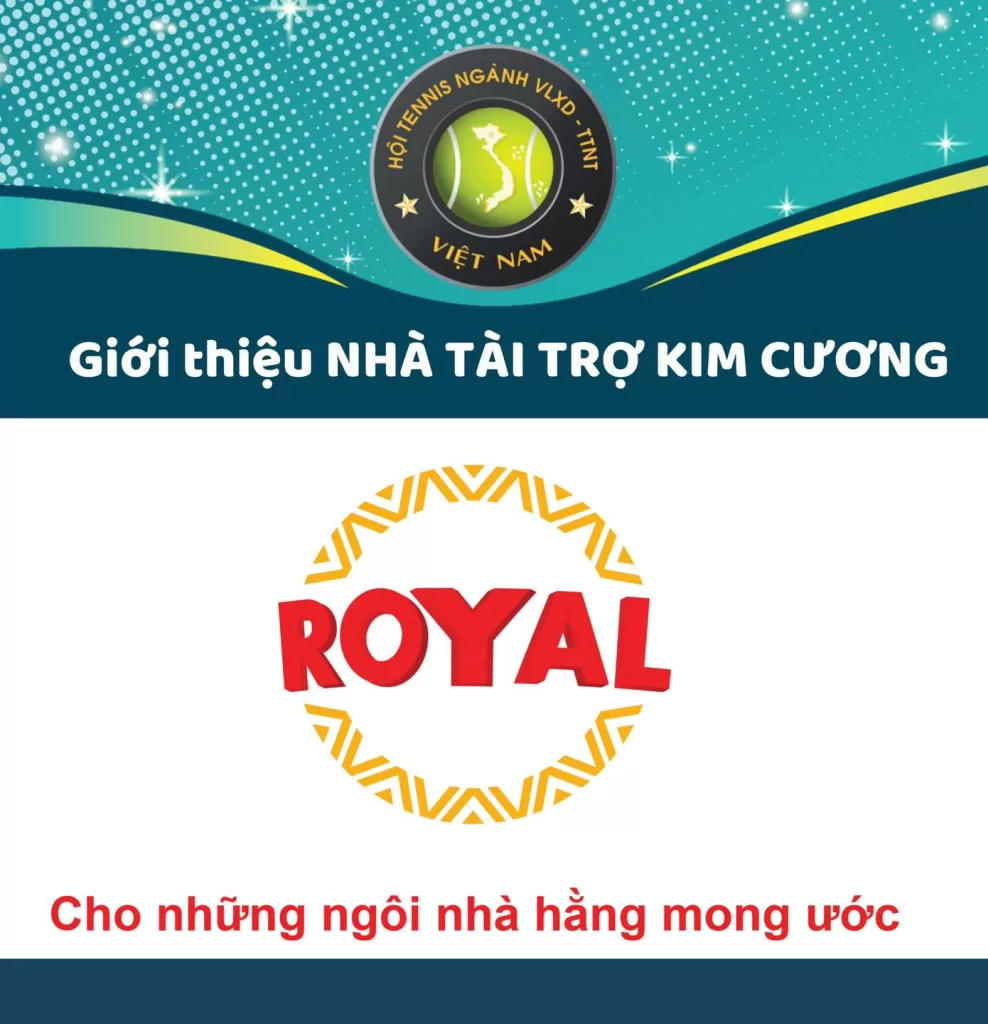 Giải tennis ngành Vật liệu xây dựng – Trang Trí nội thất Việt Nam MỪNG XUÂN 2024 hân hạnh được đồng hành cùng ROYAL, với vai trò Nhà tài trợ Kim Cương. Ban tổ chức xin trân trọng cảm ơn sự đóng góp của Quý công ty dành cho giải đấu sẽ được diễn ra vào ngày 8, 9, 10 tháng 3 năm 2024 tại TP. HCM. Chúc Quý Công ty ngày càng vững mạnh!