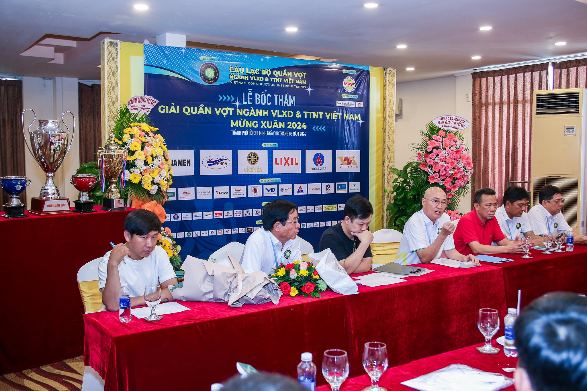 Sáng ngày 8/3/2024, tại Khách sạn Đệ Nhất đã diễn ra buổi Lễ Bốc thăm chọn ra các cặp thi đấu cho Giải Quần Vợt Ngành VLXD – TTNT Việt Nam Mừng Xuân 2024 theo tiêu chí công khai, minh bạch, chuyên nghiệp, nhanh chóng,… dưới sự điều phối của Ban Trọng Tài Quốc Gia – Ông Nguyễn Văn Thọ và Trợ lý Dư Ngọc Tín.