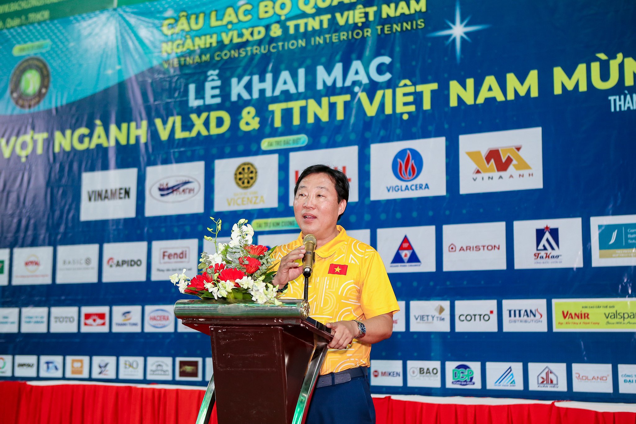 Mở đầu buổi Lễ khai mạc, Ông Nguyễn Mạnh Phát – Chủ tịch CLB Quần Vợt Ngành VLXD – TTNT Việt Nam phát biểu chào đón quý vị đại biểu. Ông hy vọng rằng với 03 ngày trải nghiệm và 02 ngày thi đấu chính thức tại TP.HCM sẽ mang đến cho Quý Ban lãnh đạo, Ban ngành đoàn thể, Quý Đại biểu Nhà tài trợ, Trưởng đoàn, anh chị em vận động viên những ấn tượng sâu sắc nhất, mang đến những giá trị thiết thực và những mối quan hệ tốt đẹp, cũng như tạo nên những trận cầu hay, mãn nhãn cho tất cả mọi người đam mê yêu thích môn Quần vợt này. Đồng thời, ông cũng xin gửi lời cảm ơn đến Cơ quan ban ngành, Quý đại biểu đã tạo điều kiện thuận lợi cho Giải đấu được diễn ra, Cảm ơn Liên đoàn Quần Vợt Việt Nam đã hỗ trợ, đồng hành sát sao, Quý tài trợ đã tin yêu, tất cả anh em vận động viên đã tin tưởng sự điều phối của Ban tổ chức mà tham gia đông đủ, cùng tất cả cơ quan báo đài đã đến tham dự và đưa tin, anh em thành viên trong Ban chấp hành, Ban tổ chức Câu lạc bộ Quần Vợt ngành Vật liệu xây dựng – Trang trí Nội Thất Việt Nam, đã góp phần cùng tạo nên một giải đấu đầy ý nghĩa và thiết thực.