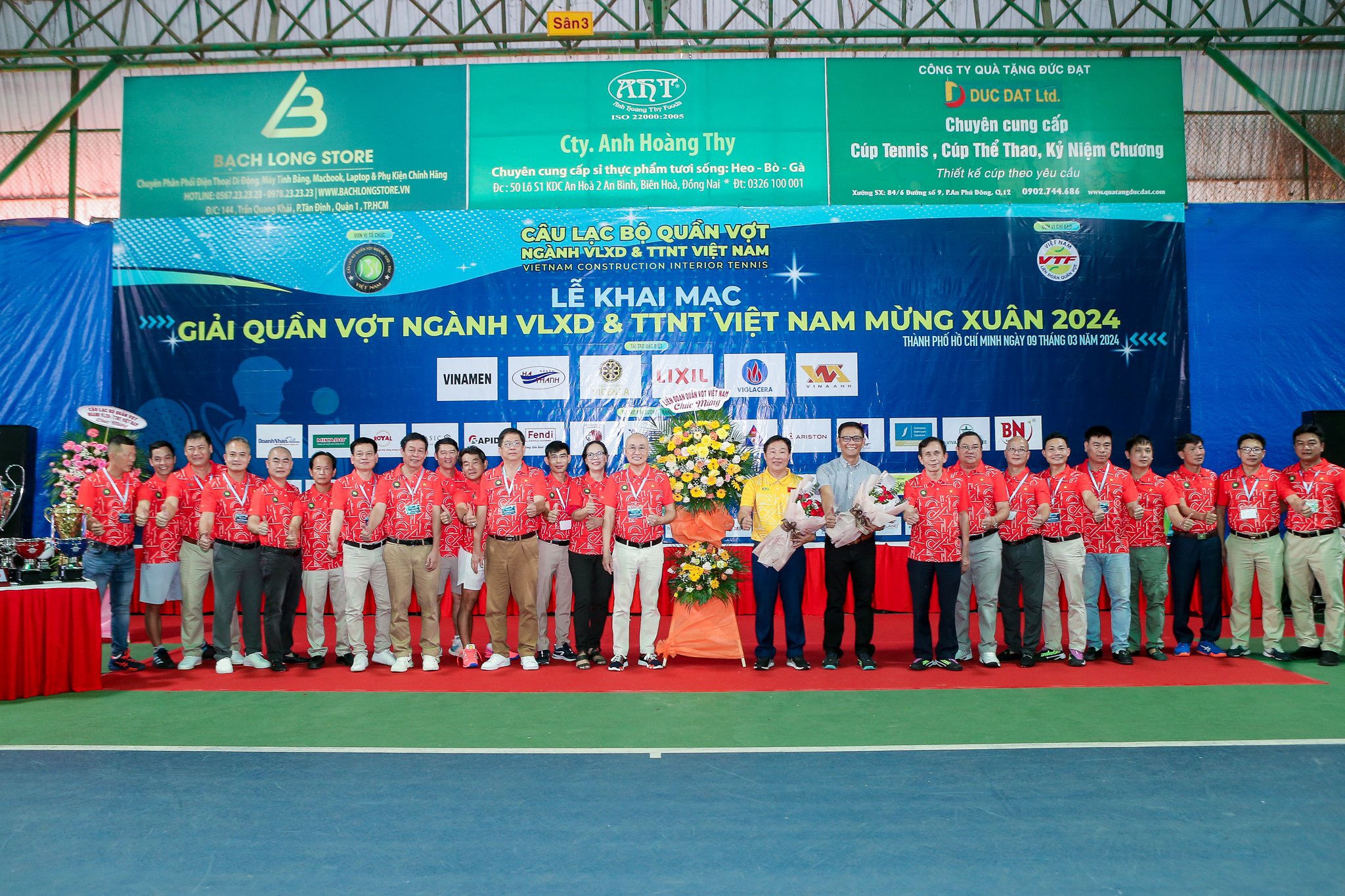 Sáng nay, 9/3/2024, tại Cụm 7 sân tennis CLB Tennis Khang An – 18A Phan Văn Trị, Phường 10, Quận Gò Vấp đã chính thức diễn ra Lễ khai mạc Giải Quần vợt Ngành Vật liệu xây dựng và Trang Trí Nội Thất Việt Nam – Mừng xuân 2024 trong không khí vô cùng sôi nổi với sự tham gia của hơn 300 vận động viên từ 30 đoàn đại diện cho 30 tỉnh thành trên toàn quốc và các Quý đơn vị liên quan. Giải đấu lần này không chỉ là một sự kiện phong trào thể thao bộ môn quần vợt mà còn là một minh chứng ấn tượng cho sức hút và sự phát triển của ngành Vật liệu xây dựng – Trang trí nội thất trong suốt những năm qua.